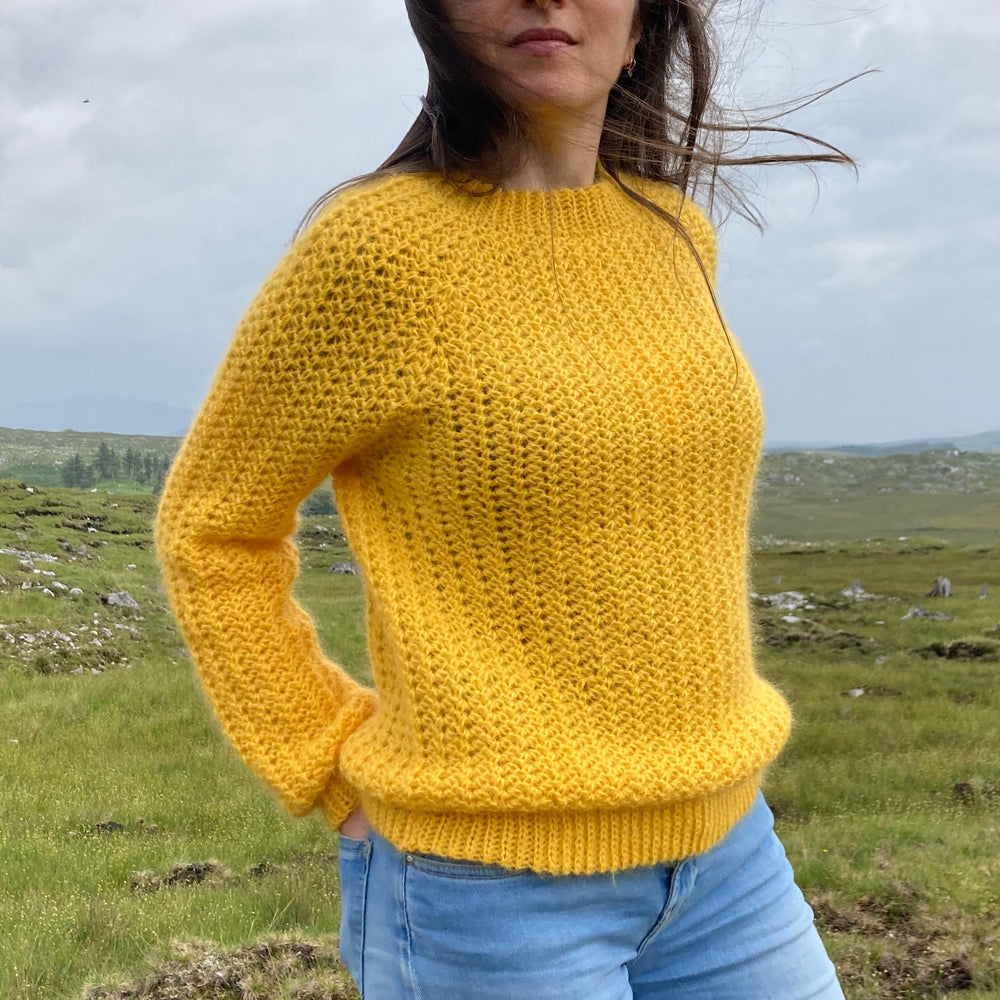 - Niveau de difficulté : ★★★☆☆. Le modèle simple convient très bien aux niveaux intermédiaires mais le fil mohair ajoute de la difficulté car il est difficile à défaire en cas d'erreur.